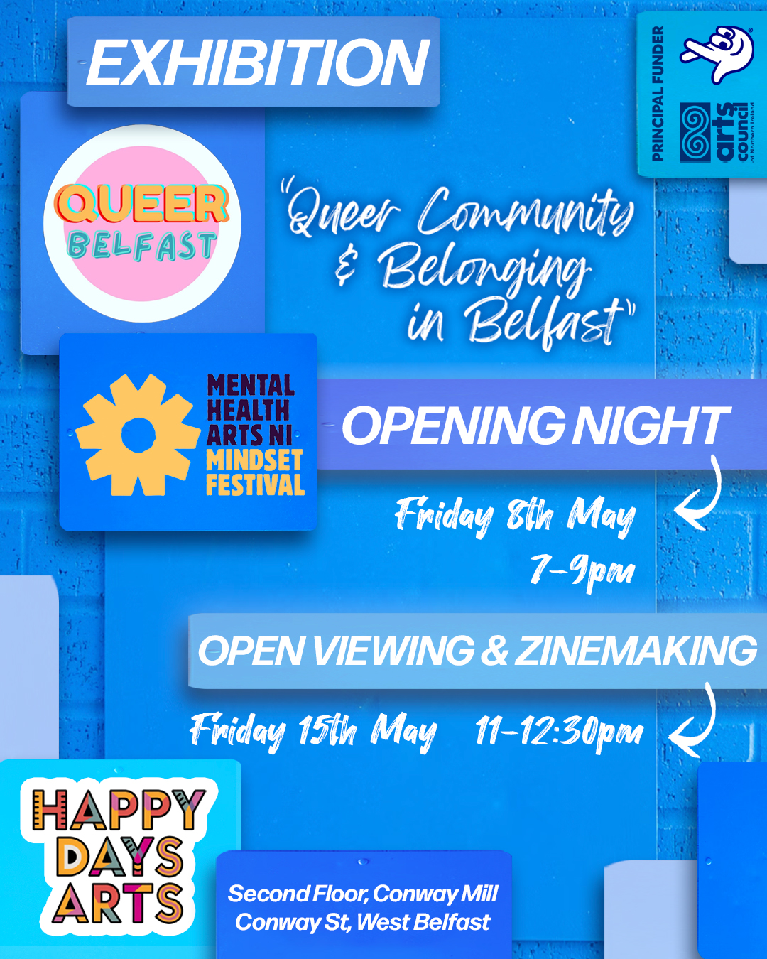 We are delighted to host Queer Belfast at Happy Days Arts, in collaboration with the NI Mental Health Arts Festival.